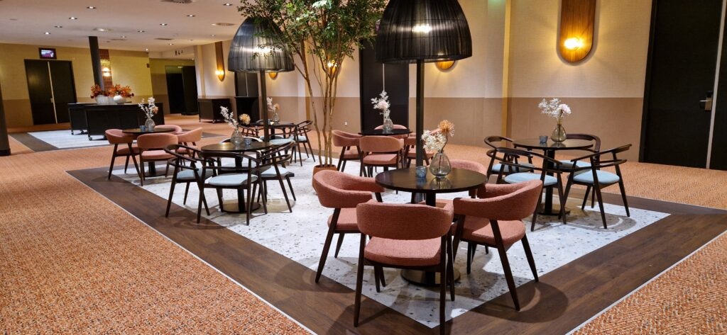 De zalenetage is op de eerste verdieping gelegen. U kunt deze rechtstreeks vanuit de parkeergarage met de lift bereiken. Toiletten en garderobe zijn ook op de zalenetage gelegen.